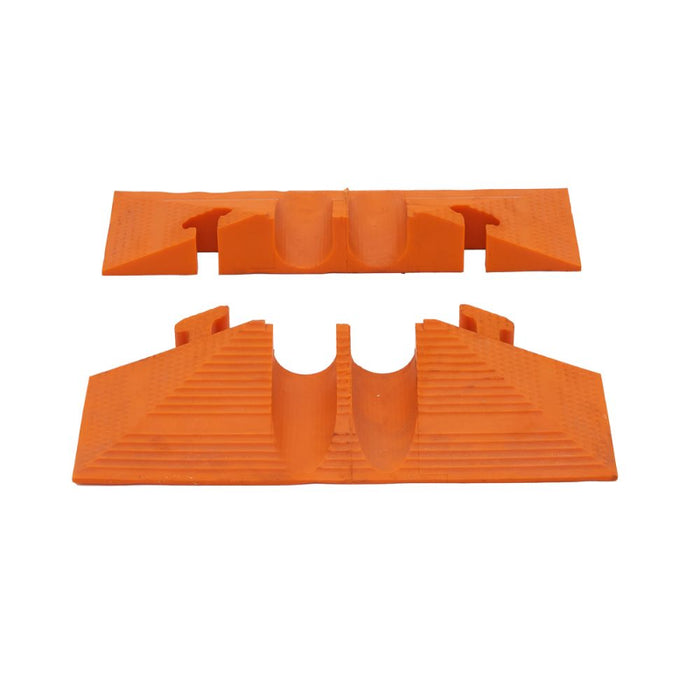 Two 2" rounded channels. Male and female end caps for MightyGuard two-channel cable protector. Orange.