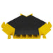 Use the 4-Channel Bumble Bee® "Y" Split Section model BB4Y-300GM-B/Y with Bumble Bee 4-Channel Cable Protector model BB4-300GM-B/Y. The Y split creates a 45 degree turn while protecting valuable electrical cables and hose lines up to 3” tall by 3” wide from damage. Ideal for use in automotive, appliances and other high-volume, limited access, automated manufacturing facilities, the module, interlocking design provides a safe crossing in high volume traffic areas.